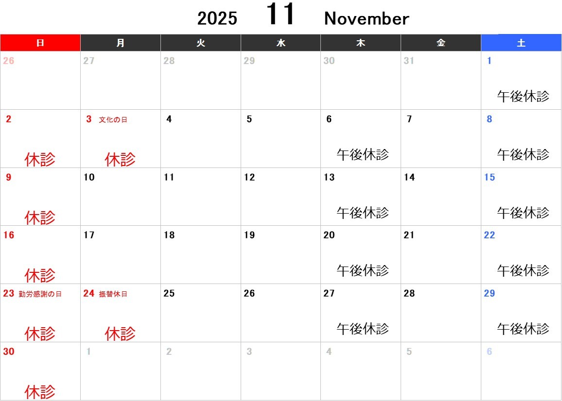 11月の診療予定