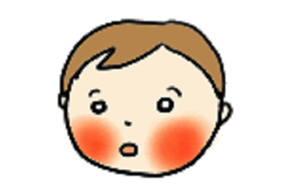 ほっぺがリンゴのように赤くなるので「りんご病」とよばれています。太ももや腕にも赤い斑点やまだら模様ができることがあります。